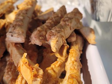 Pains frits farcis de fromage, choux, champignons ou viande de porc