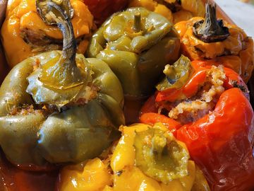 Poivrons farcis de viande porc et viande fume