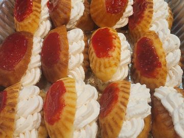 Gâteau imbibé dans un sirop au rhum avec crème chantilly